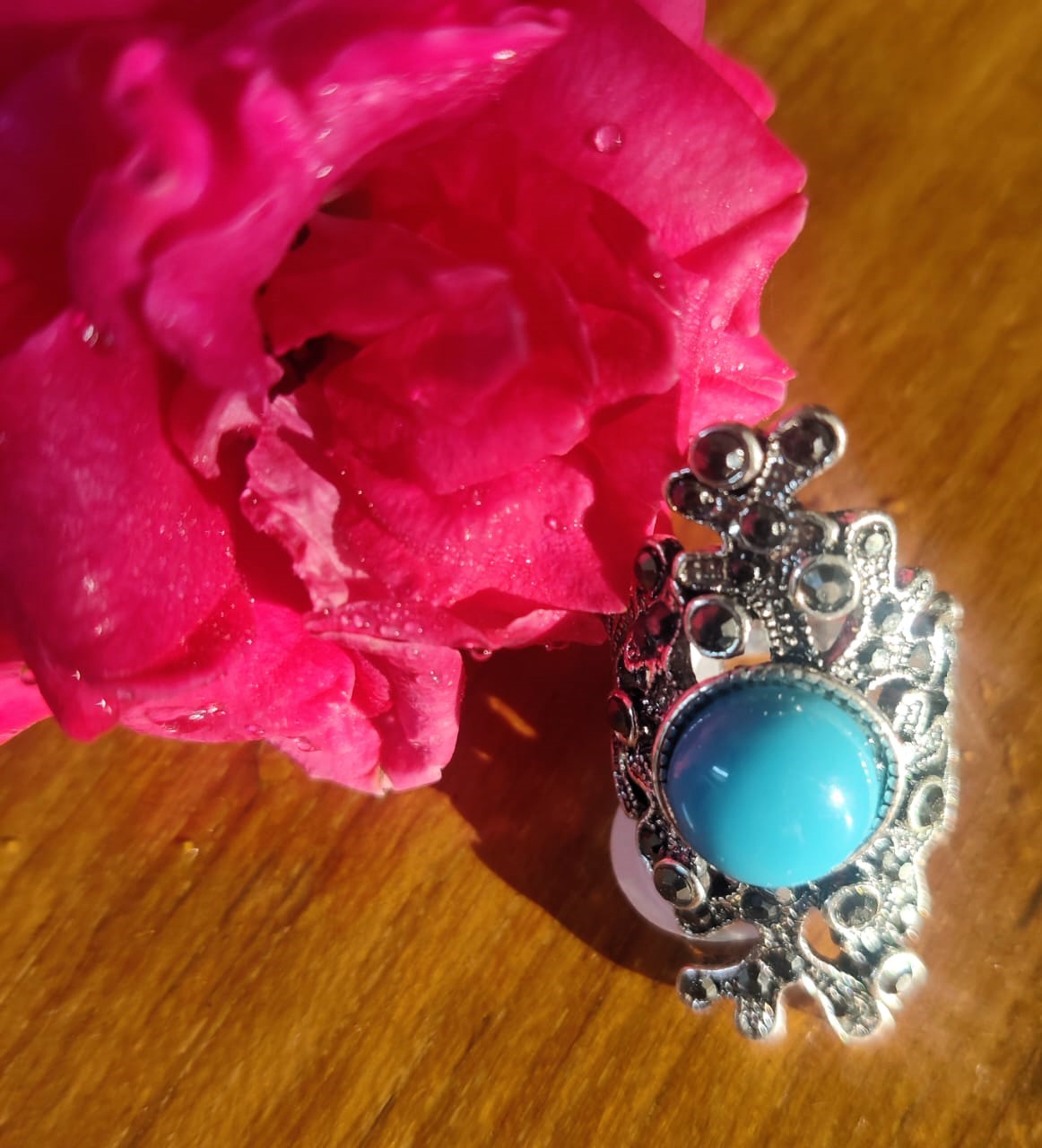 The Blue Stone Ring with Carving is a unique and artistic piece, featuring a beautifully carved blue stone as the centerpiece. The intricate carvings on the stone add texture and depth, giving the ring an antique or handcrafted appeal. Set in a sleek or ornate band, this ring merges elegance with craftsmanship, making it a standout accessory for those who appreciate detailed artistry and vibrant blue hues. Perfect for adding a bold yet refined touch to any outfit.