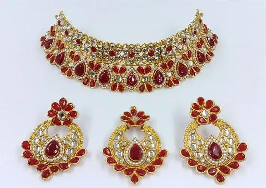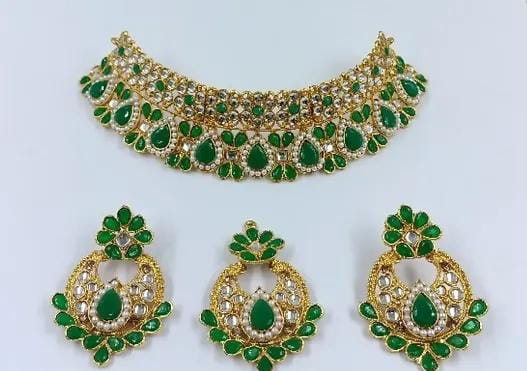 The Kundan Stone Necklace Set with Earrings and Maang Tikka is an exquisite piece of traditional jewelry. Featuring intricately designed Kundan stones that reflect light beautifully, this set combines elegance with cultural charm. The necklace typically showcases a stunning arrangement of Kundan stones, complemented by matching earrings and a decorative maang tikka that enhances the overall look. Perfect for weddings, festivals, or special occasions, this set adds a regal touch to any attire.